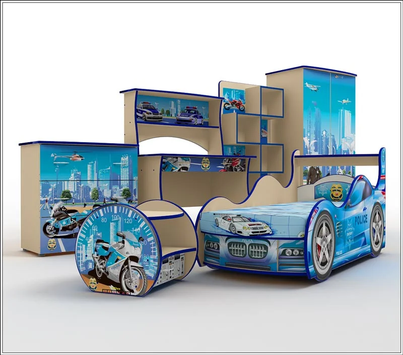 В данной товарной позиции предлагается полный Набор детской мебели "Полиция" из 6 предметов (с поролоновым матрацем):