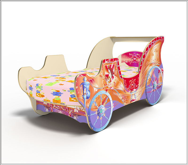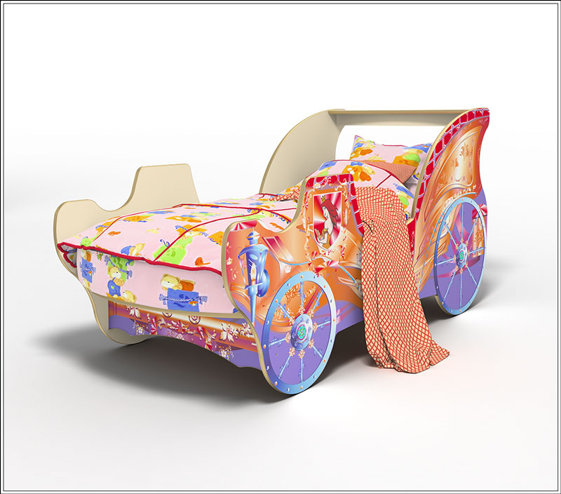 Кровать для девочки "Карета" без ящика, предлагается на выбор разных размеров спального места.