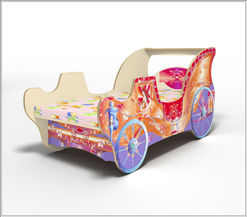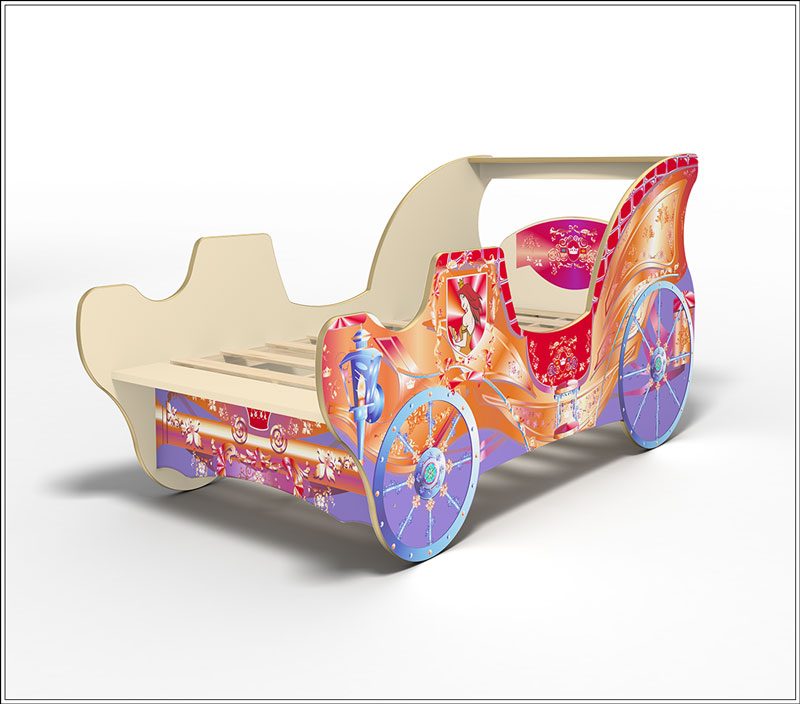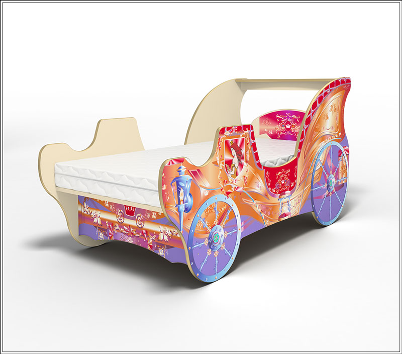Кровать для девочки "Карета" с ортопедическим основанием предлагается на выбор разных размеров спального места.
