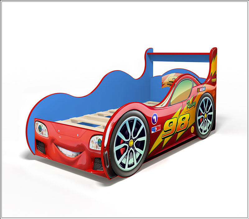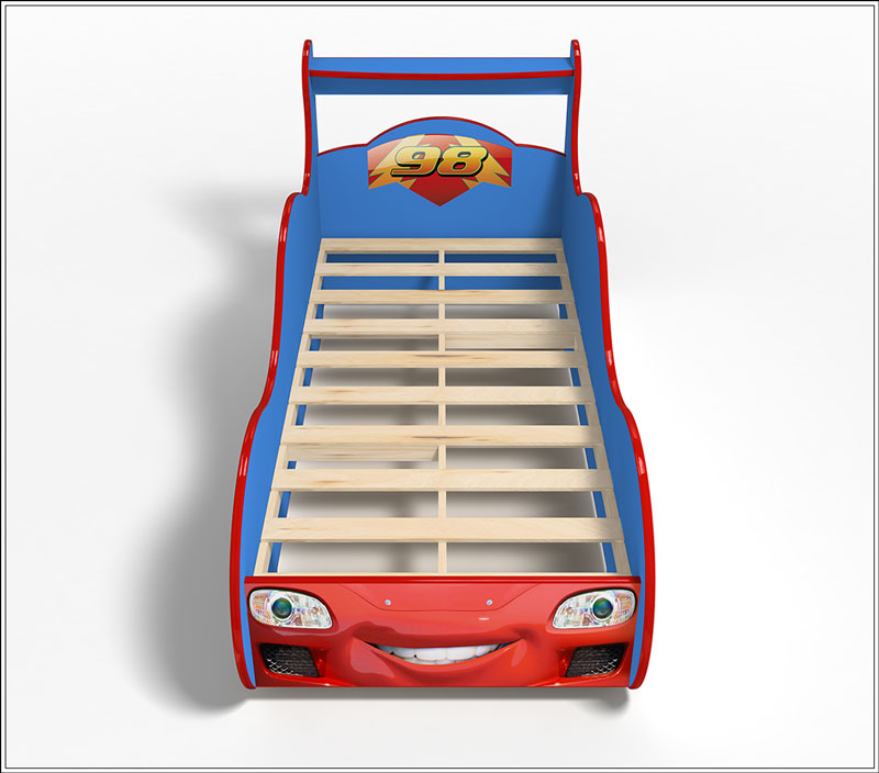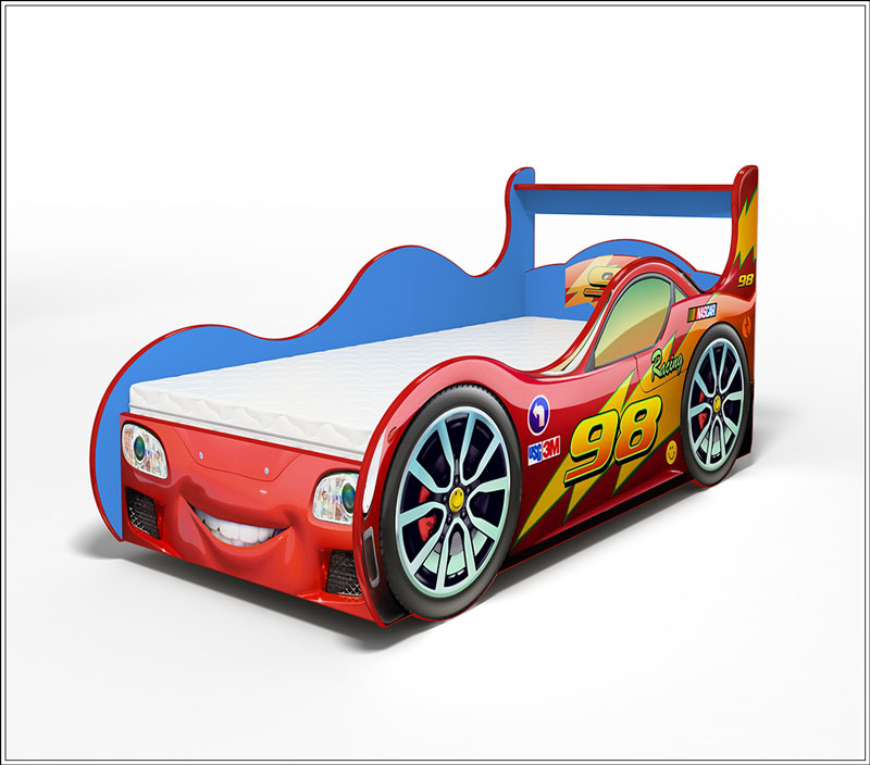 Кровать-машина "Тачки" с ортопедическим основанием предлагается на выбор разных размеров спального места.