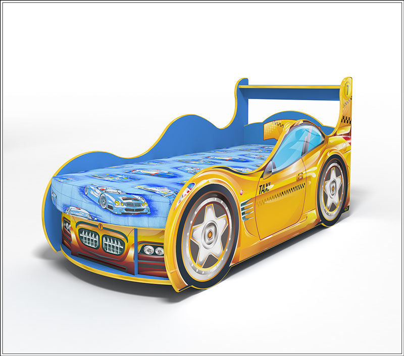 Кровать-машина "Такси" без ящика, предлагается на выбор разных размеров спального места.