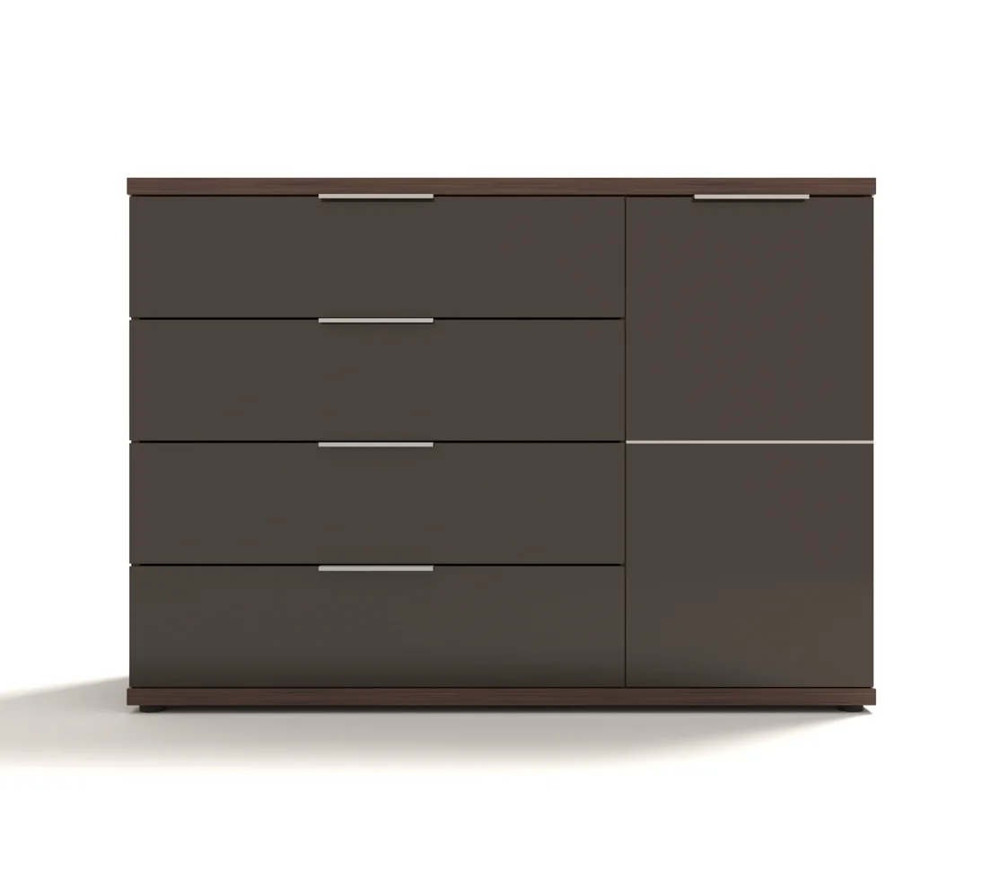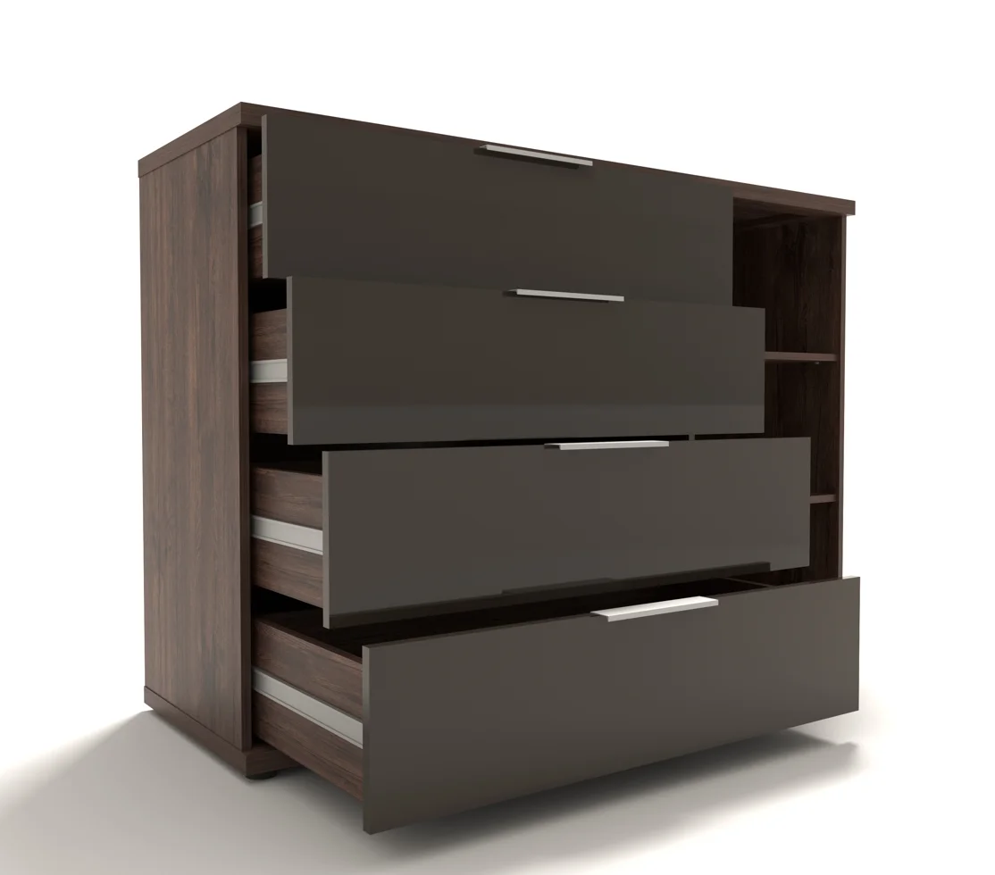 Комод 1-створчатый высокий СД-527 Сидней, с 2 полками и 4 ящиками, фасад ЛДСП с отделкой ал. профилем.