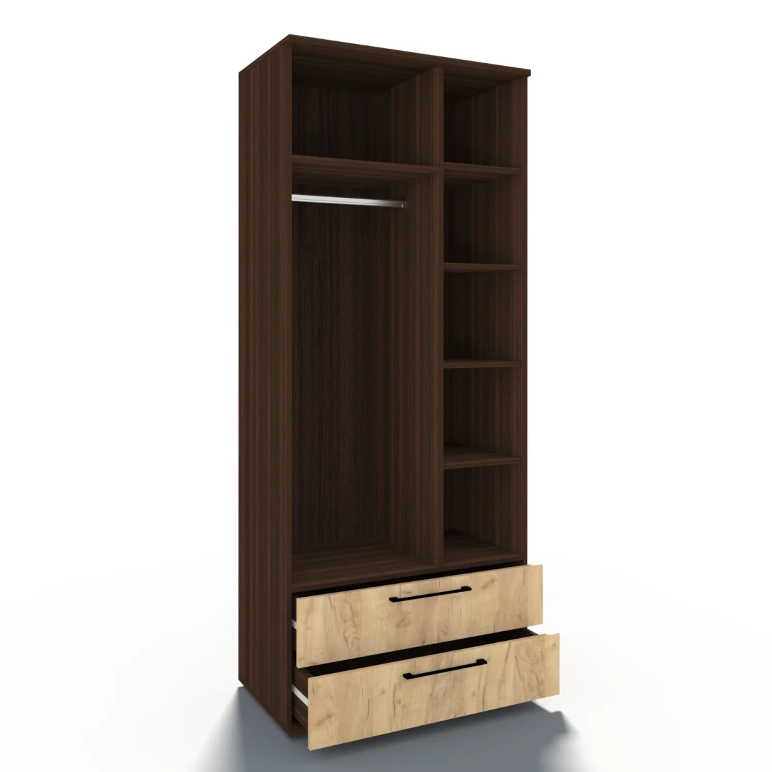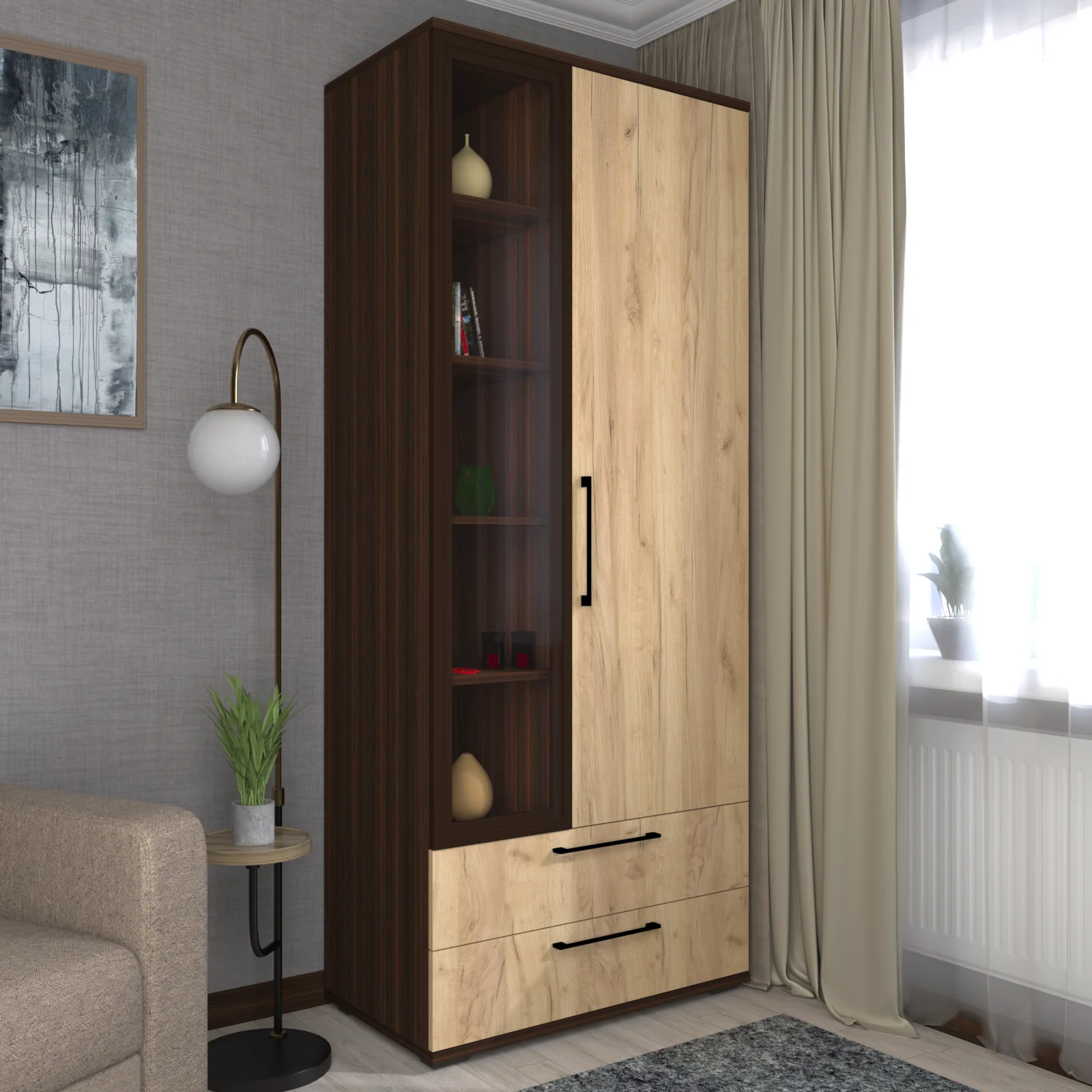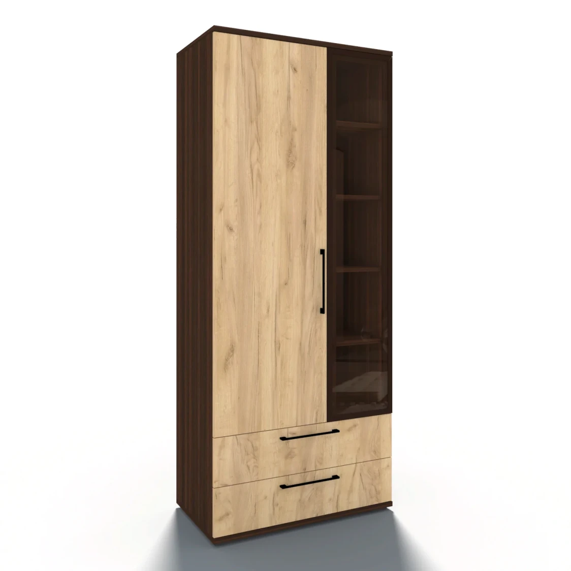 Шкаф-витрина 2-створчатый Ч-122МШ Чили с фасадом ЛДСП, из стекла в профиле МДФ, со штангой, 7 полками и 2 выдвижными ящиками.