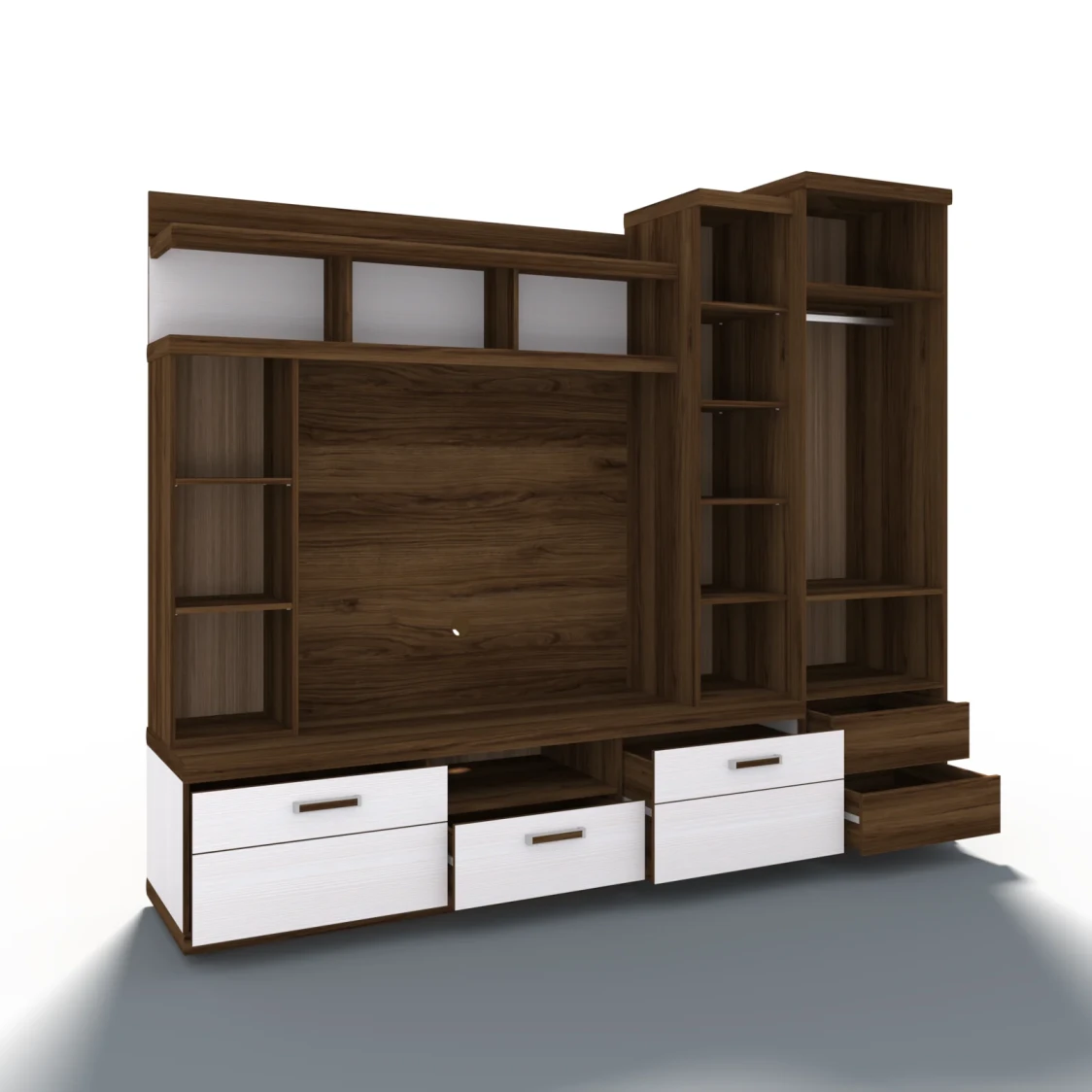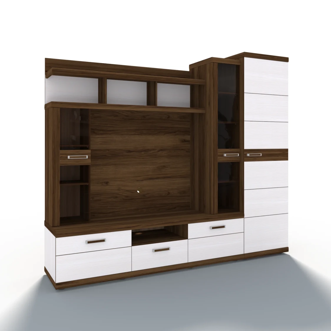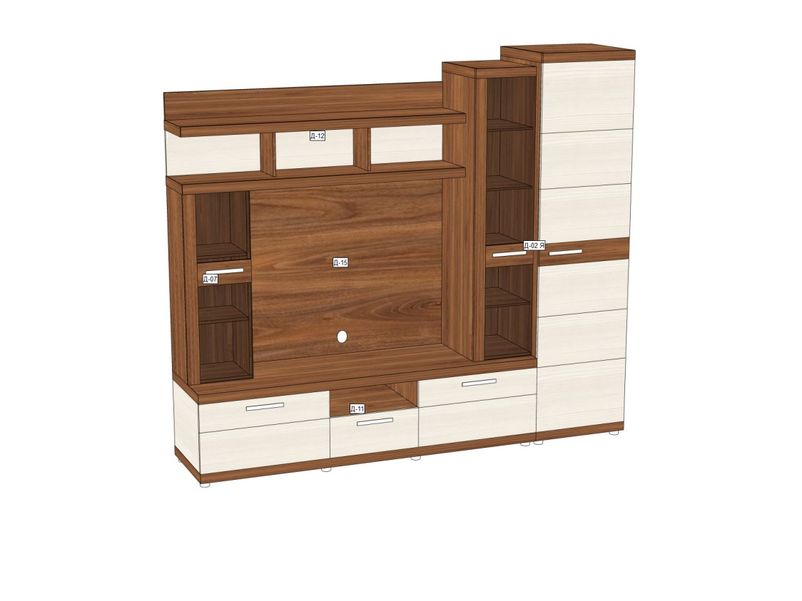 Д-02Я Шкаф-витрина 1 створчатый глубокий, с полками ДСП: 2 шт. в шкафу, 4 шт. в витрине, штанга, 2 выдвижных ящика, в витрине фасад стекло;
