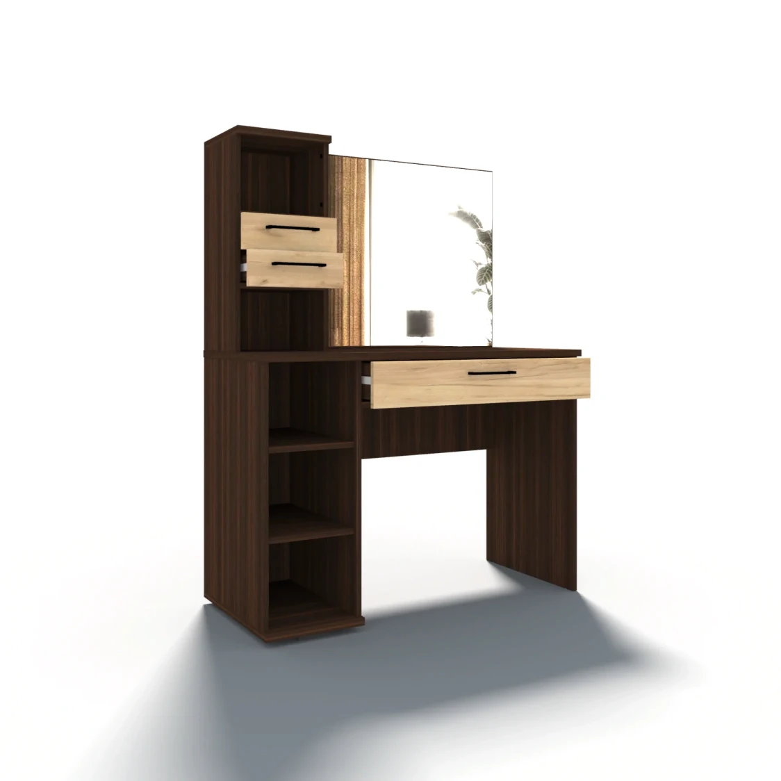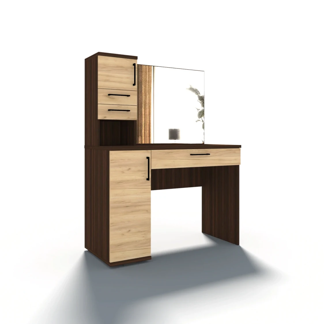Стол-трюмо Ч-402 Чили с 1 выдвижным ящиком и 2 полками, панелью с зеркалом с 2 малыми выдвижными ящиками и дверцей, фасад ЛДСП.