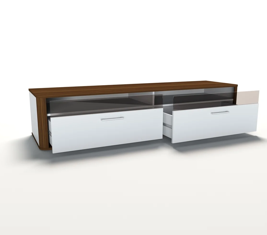 Тумба ТВ ЭВС-03 "Эвия" с 2 ящиками и 2 нишами, фасады ЛДСП + стекло.