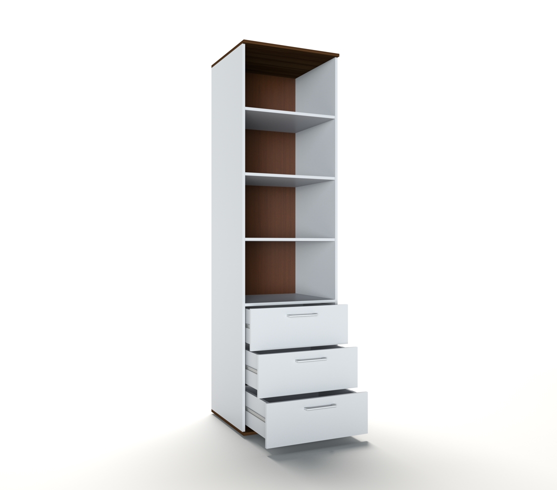 Шкаф-витрина 1-створчатая широкая ЭВС-135 Эвия, с 4 полками ДСП и 3 выдвижными ящиками, фасад стекло.