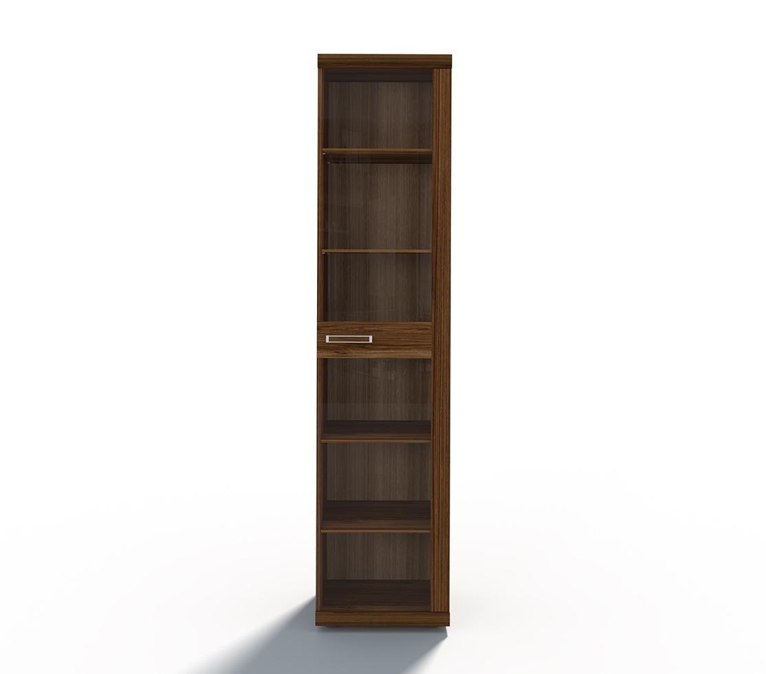 Витрина 1-створчатая узкая Д-22 Дрезден, с 5 полками ДСП, фасадом из стекла, с профилем МДФ.