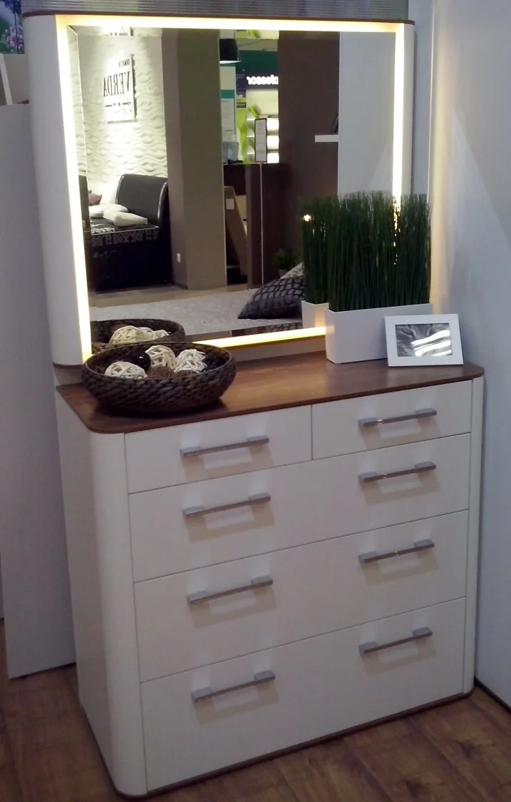 По желанию Вы можете заказать Панель с зеркалом, которую можно повесить над комодом (см. отдельные товарные позиции спальни Эвия):