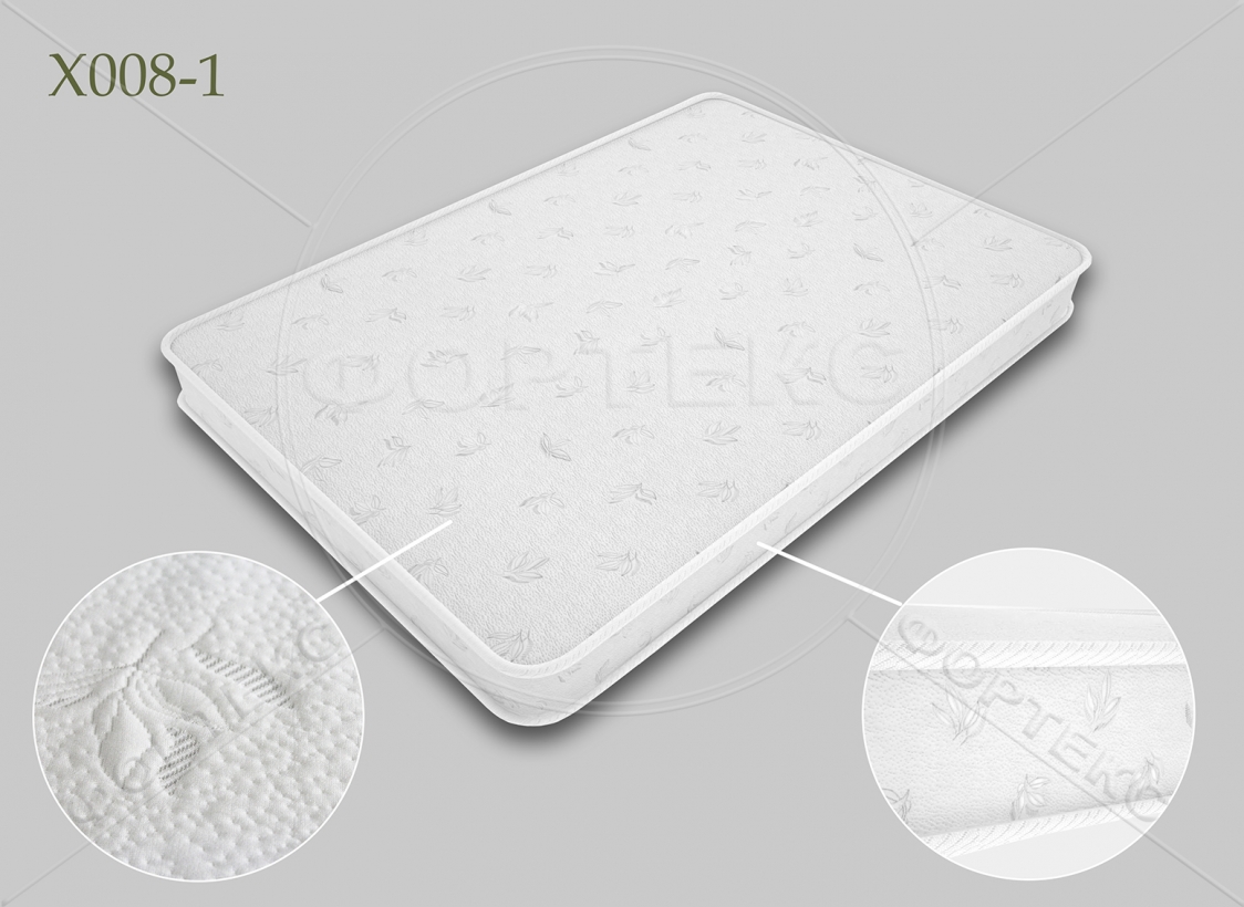Наполнение: Поролон ST 22/36 30мм; войлок 5мм. (2 слоя); блок независимых пружин 120мм, 256 пружин на 1м2, толщина проволоки 1,8мм. Чехол матраса съемный на молнии. Обивочная ткань, стеганая на синтепоне 100гр. и холлконе 200гр, предлагается на выбор: