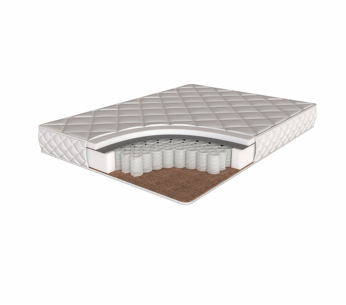 Наполнение: поролон ST 22/36 30мм; войлок 5мм; блок независимых пружин 120мм, 256 пружин на 1м2, толщина проволоки 1,8мм; кокосовая койра 10мм. Чехол матраса съемный на молнии. Обивочная ткань, стеганая на синтепоне 100гр. и холлконе 200гр., предлагается на выбор: