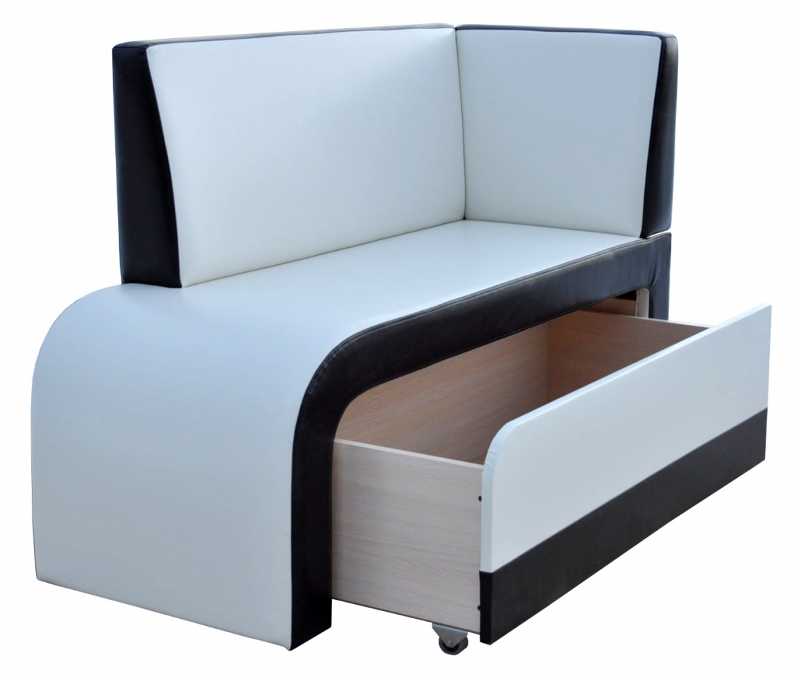 Под сиденье банкетки можно встроить выкатной ящик для хранения.