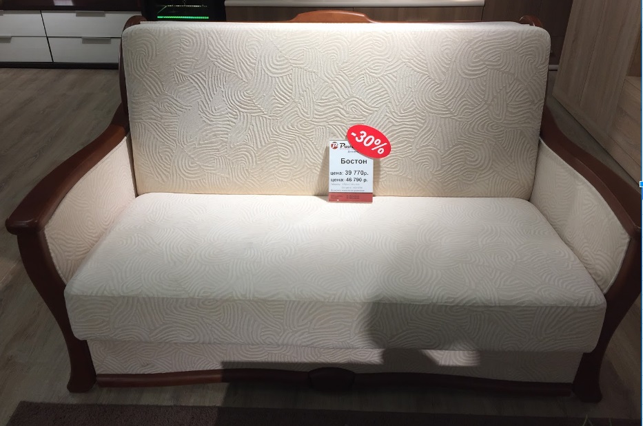 Обратите внимание, на диване-кровать ”Бостон” в тканях с рисунками-полосой, допустимо искажение рисунка на локтях, из-за асимметрии формы конструкции!