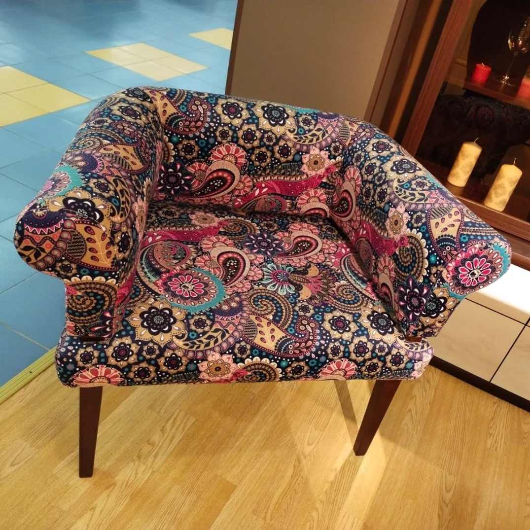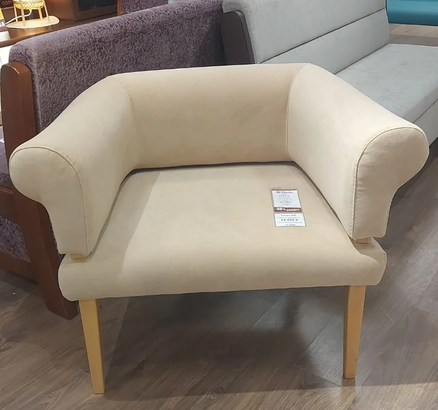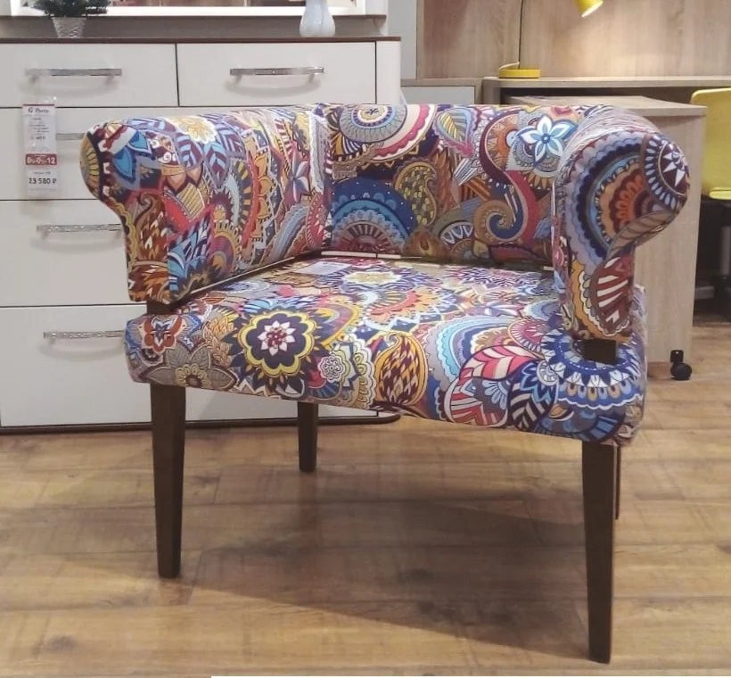 Кресло для отдыха Карина с подлокотниками и спинкой. Обивка - микровелюр, ножки из массива бука. Декор и обивочная ткань выбираются по желанию заказчика.