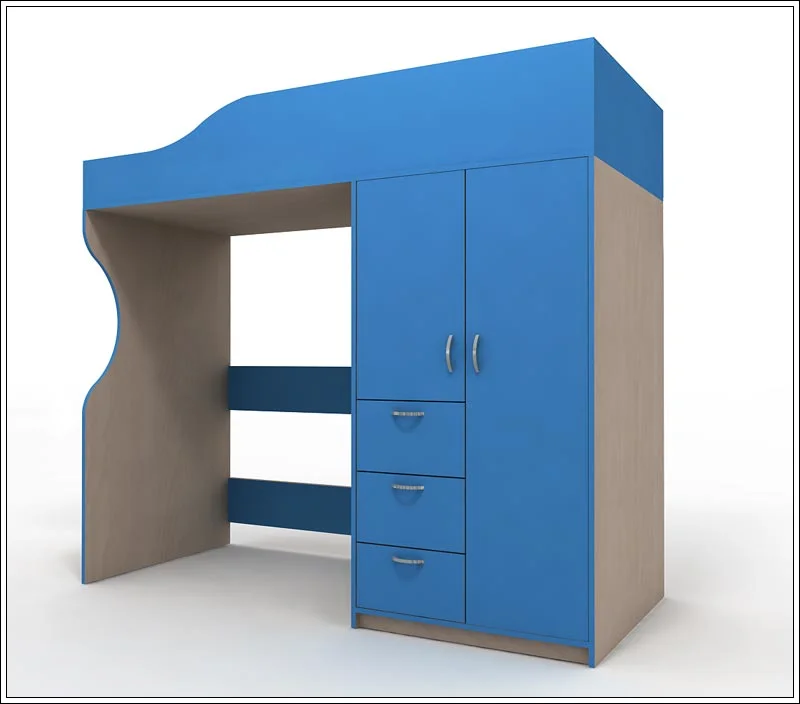 Комплектация кровати-чердака может быть дополнена: столом, любой тумбой, лестницей, матрацем, большой задней стенкой и другими модулями из доступных в разделе "Кровать-чердак Колибри/Стриж/Чибис".