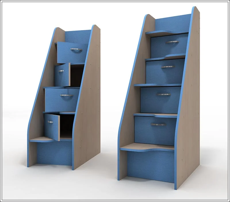 Лестница-комод ДК 6-4 Колибри-2 с 4 открывающимися дверцами (ДК 6-5 с выкатным ящиком), может быть заказана и как дополнение к любой серии подростковой мебели, и как отдельный предмет интерьера.
