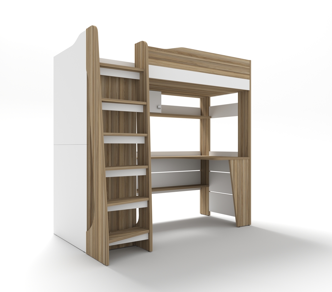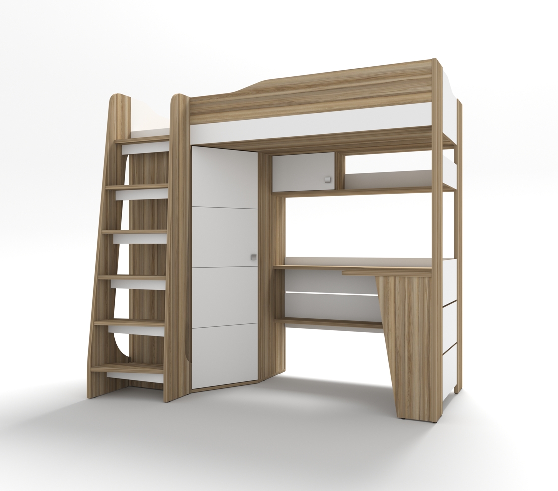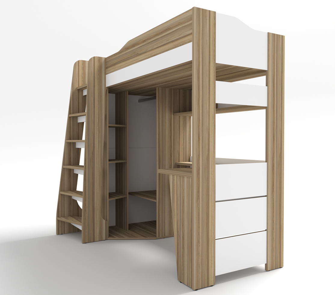 Общие габариты кровати-чердака без лестницы Ш/В/Г: 1954/1850/1222 мм.