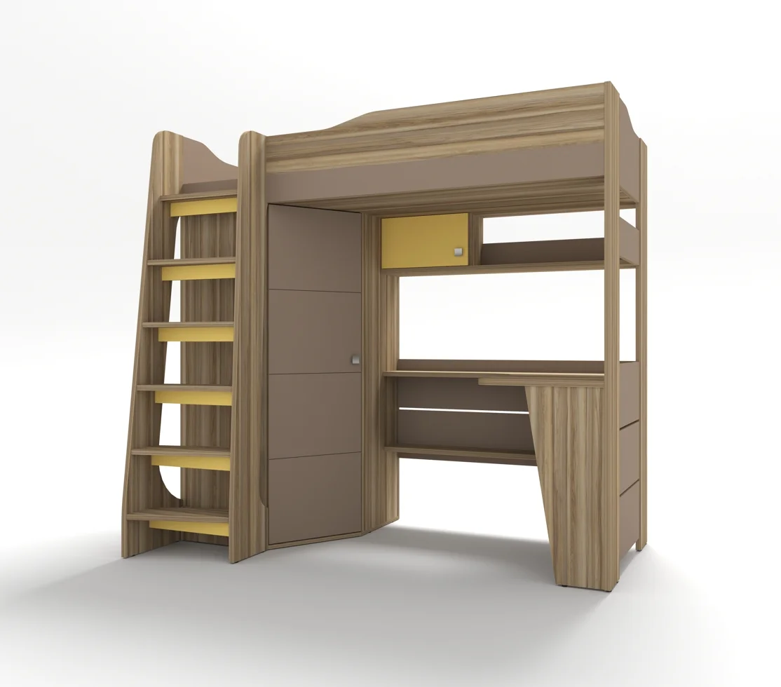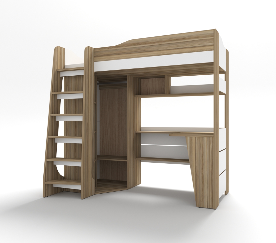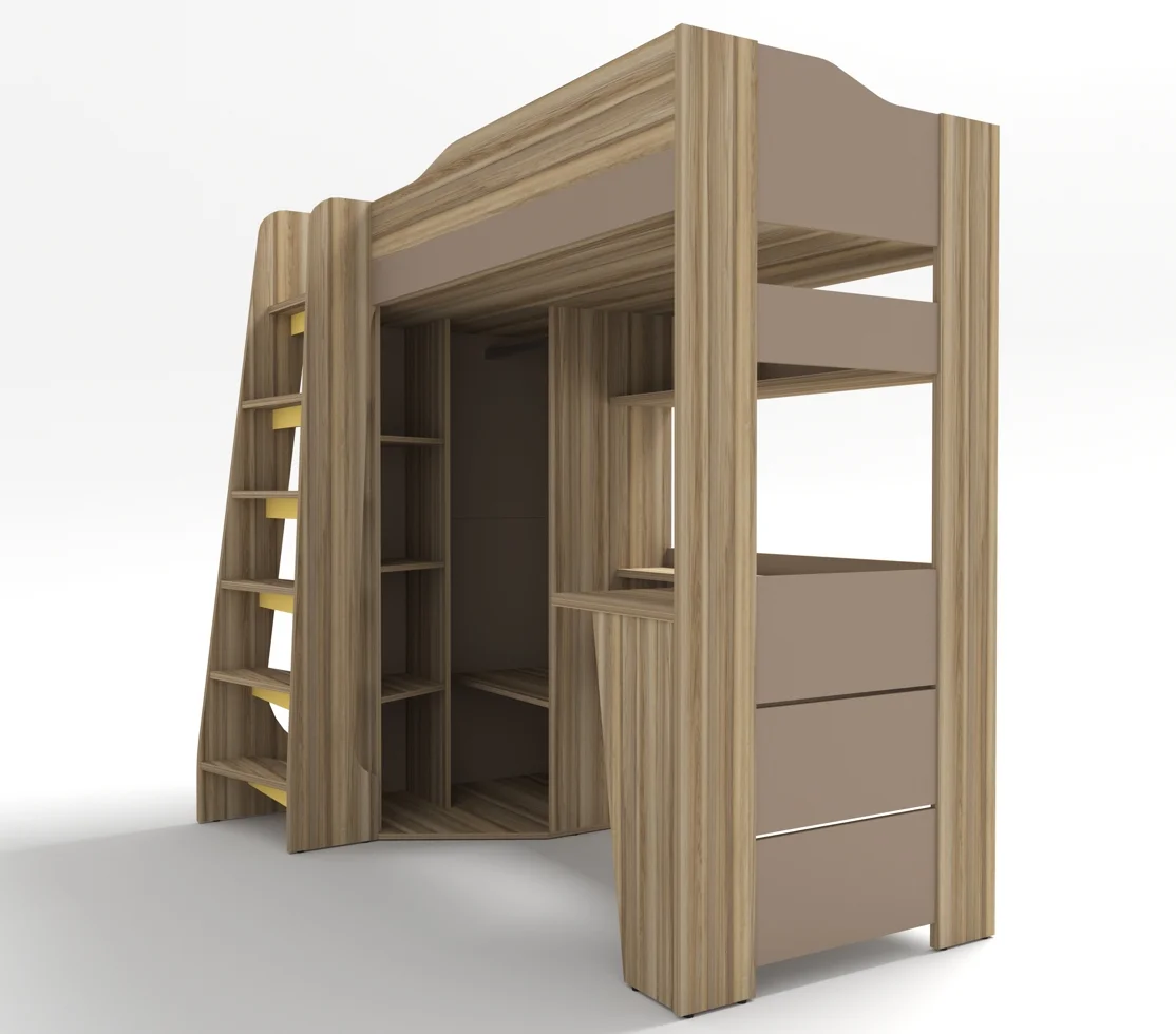 По желанию кровать-чердак можно изготавливать в любом исполнении, шкаф с лестницей справа/слева.