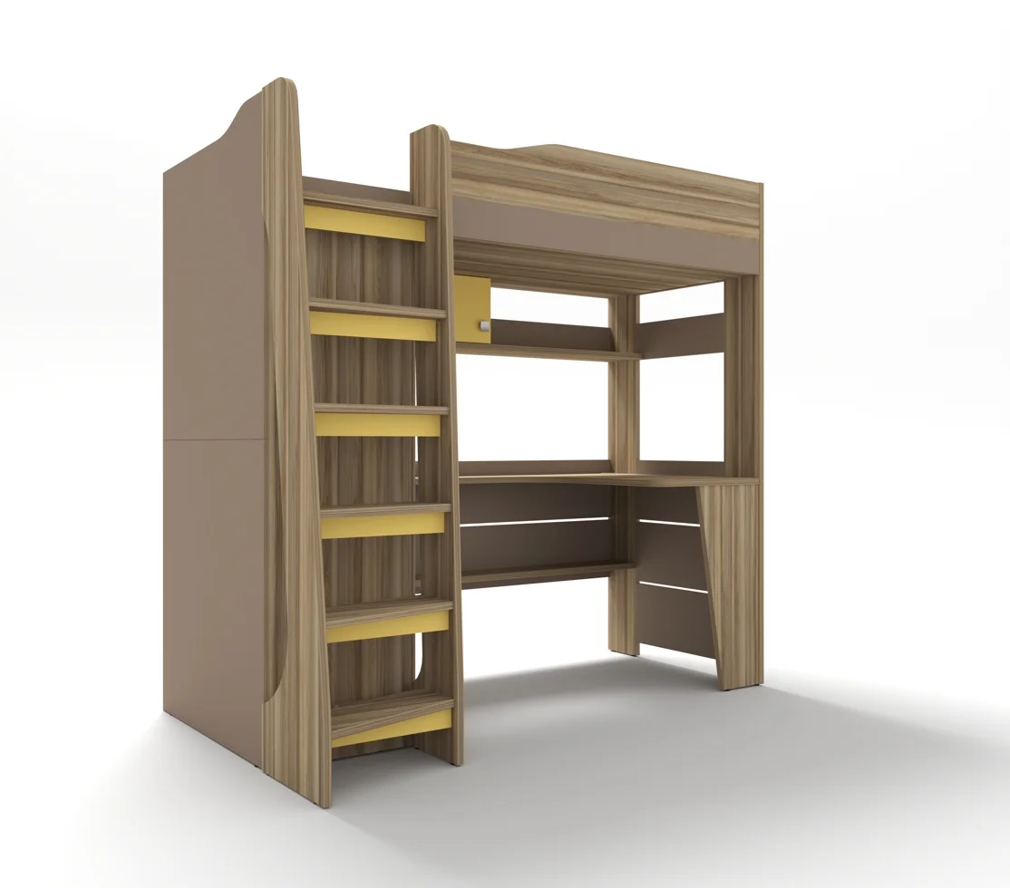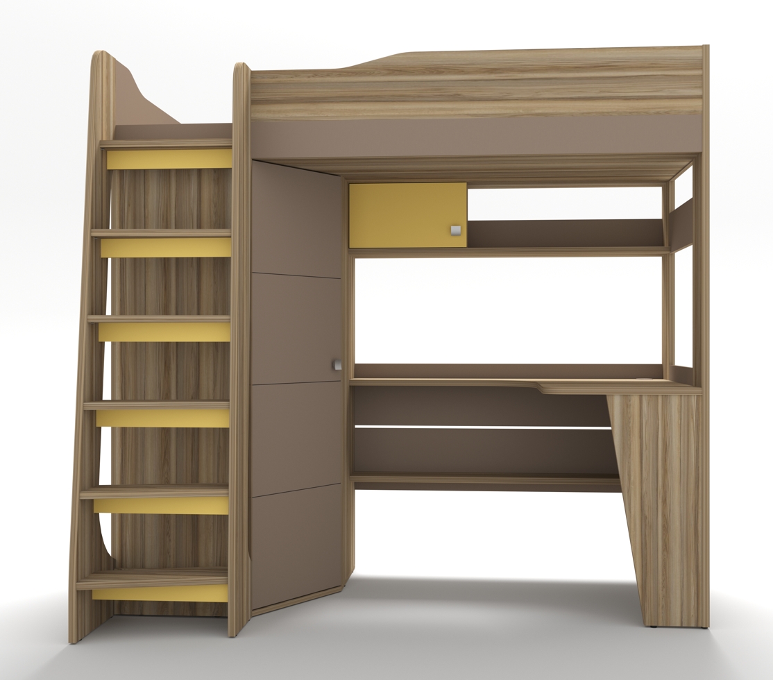 По желанию кровать-чердак можно изготавливать в любом исполнении, шкаф с лестницей справа/слева.