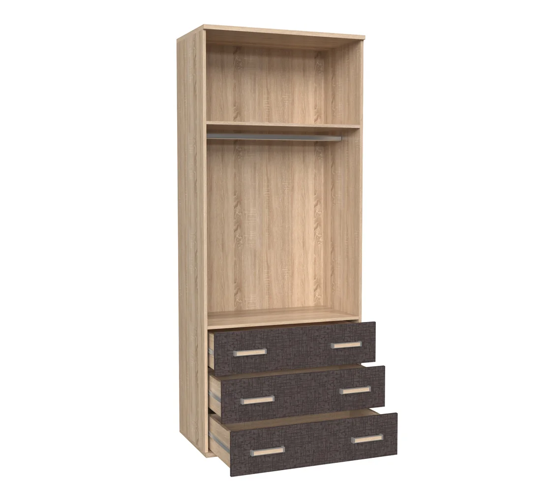Шкаф 2-створчатый ОР-29 Орион-2, с 2 полками ЛДС, штангой для одежды и 3 выдвижными ящиками, 4 фасада из 2-х цветов.32470