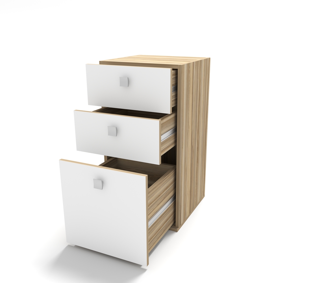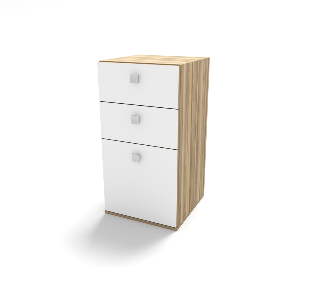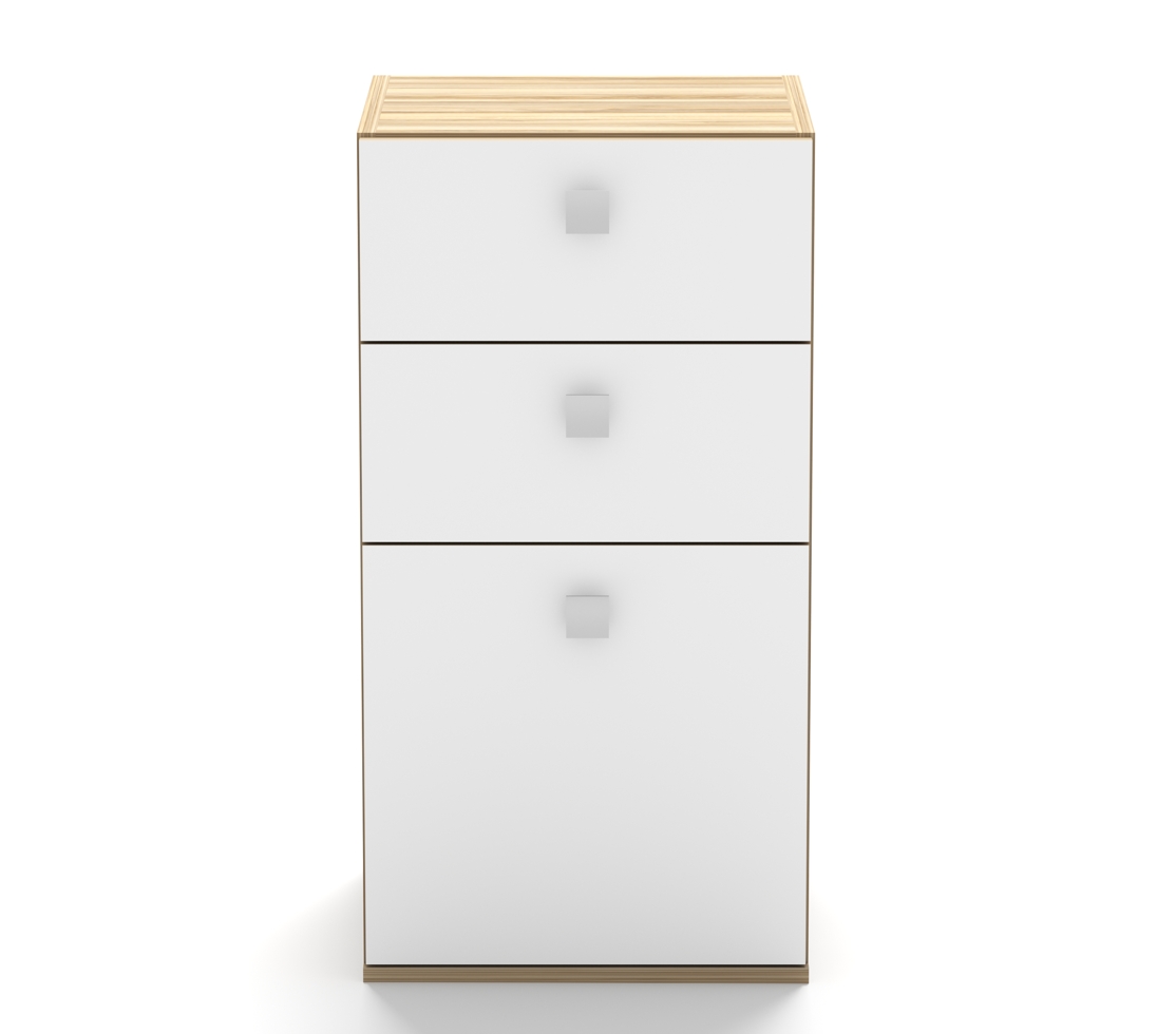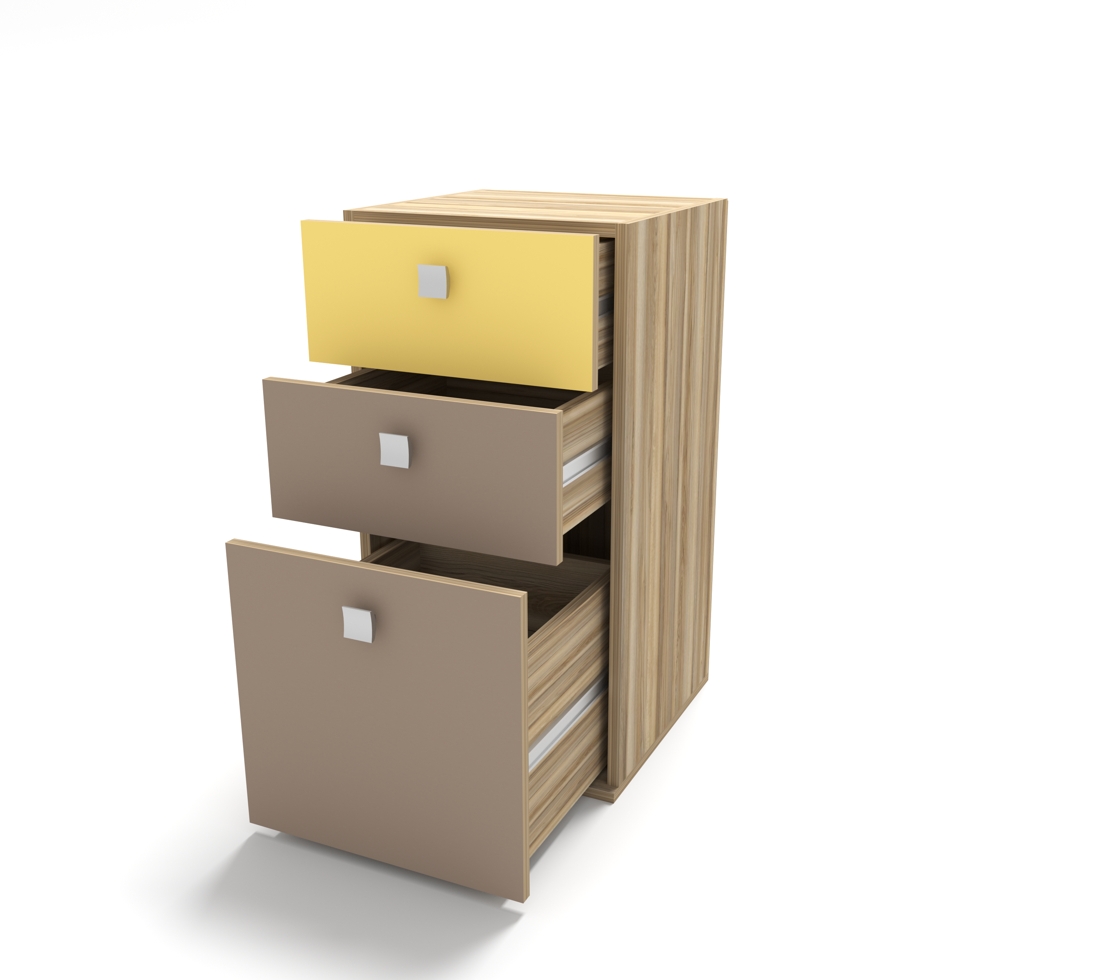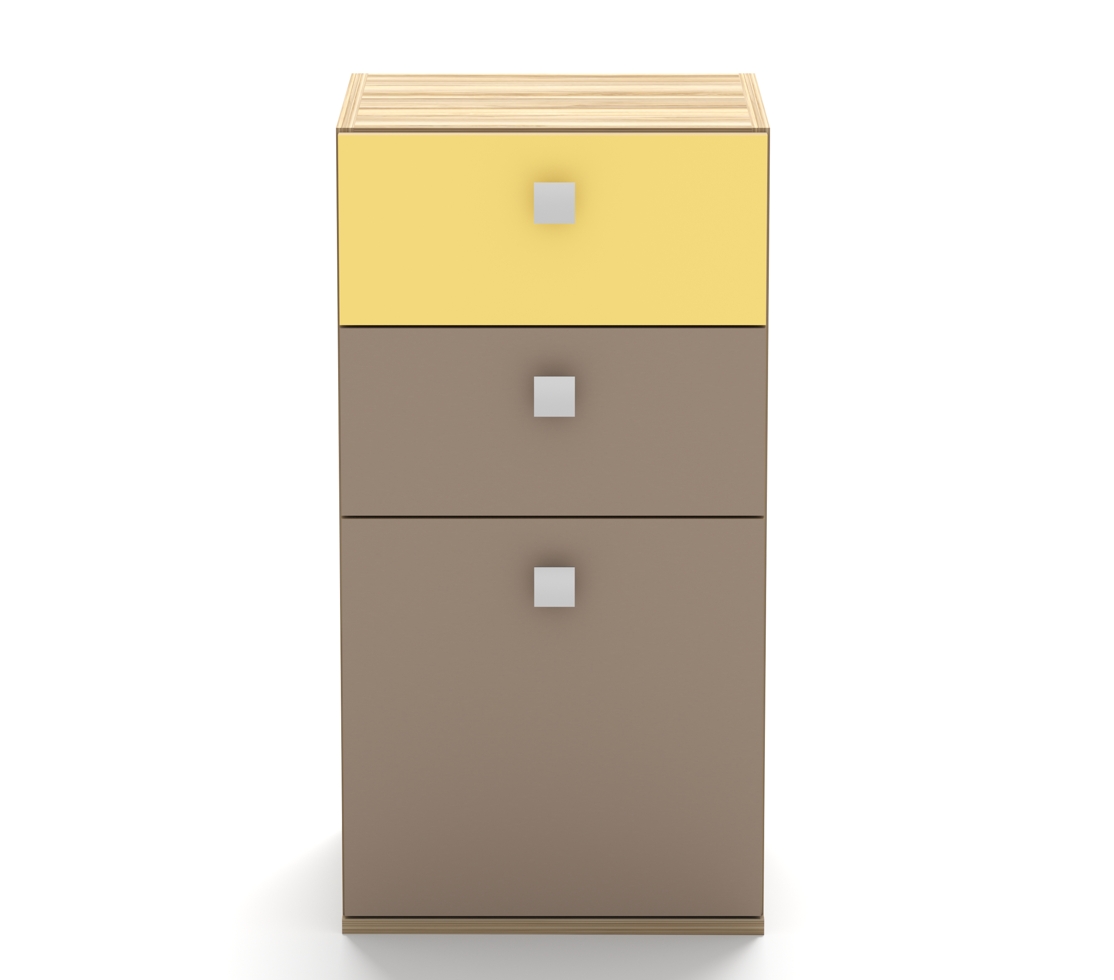 Тумба КН-25 с 3 разными по высоте ящиками, может быть заказана и как дополнение к кровати-чердаку Концепт-3, и как отдельный предмет интерьера.