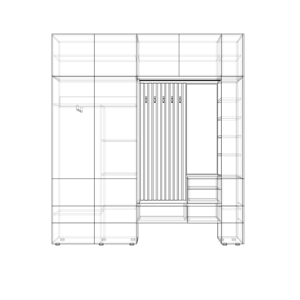 - Вешалка с 5 крючками на рейках, крепление на щите, с ящиком для обуви. В/Ш/Г: 1672/600/370 мм;