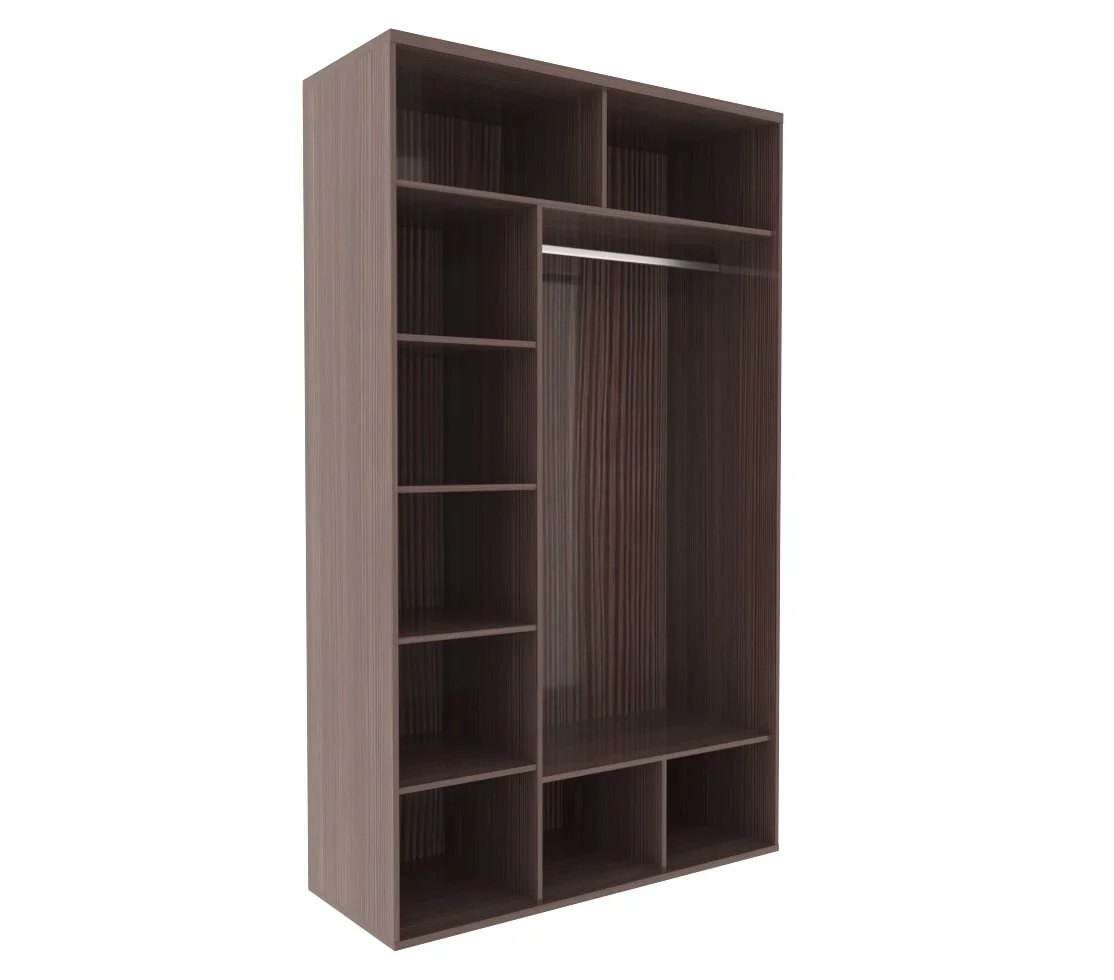 Наполнение шкафа: 3 двери ЛДСП, 6 полок (2 больших + 4 маленьких), продольная штанги.