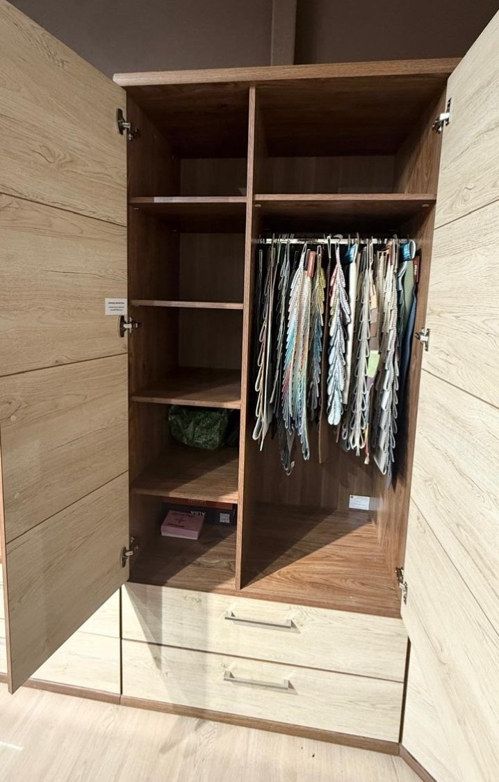 К-01 2-створчатый шкаф со штангой и полками, 2 выдвижными ящиками, петли Хеттих, Ш/В/Г: 960х2100х560 мм;