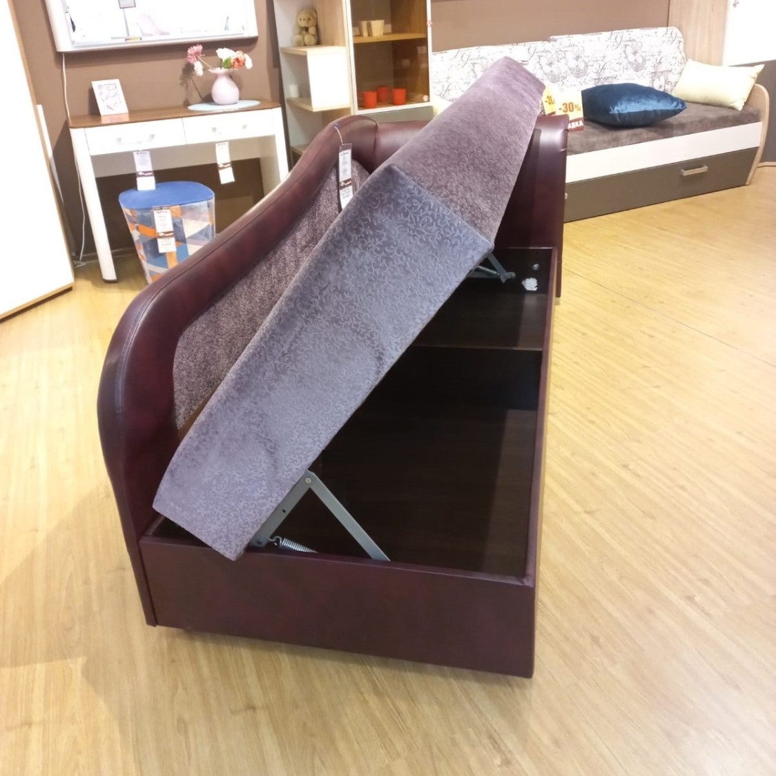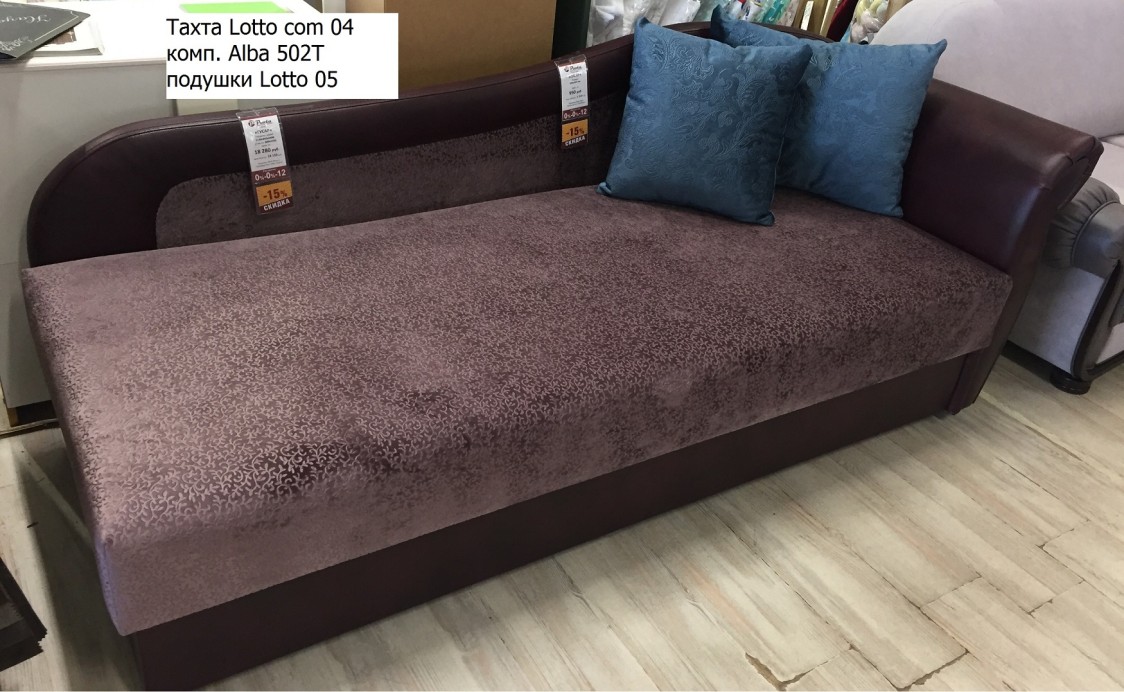 Тахта ГУСАР в расцветке ткани основа - обивка Lotto com 04 (СоюзМ), компаньон - Alba Elena502T (Артефакт), расположение угла "Г" + 2 подушки в расцветке Lotto 05 (Союз М), образец в выставочном зале, в сборе.