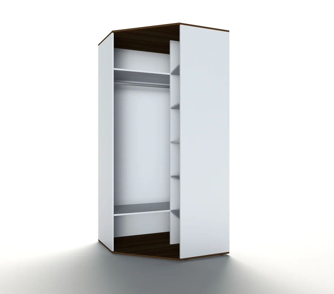 Шкаф 1-створчатый угловой ЭВС-153 Эвия, с 7 полками и штангой, фасад ЛДСП составной из 3 частей.