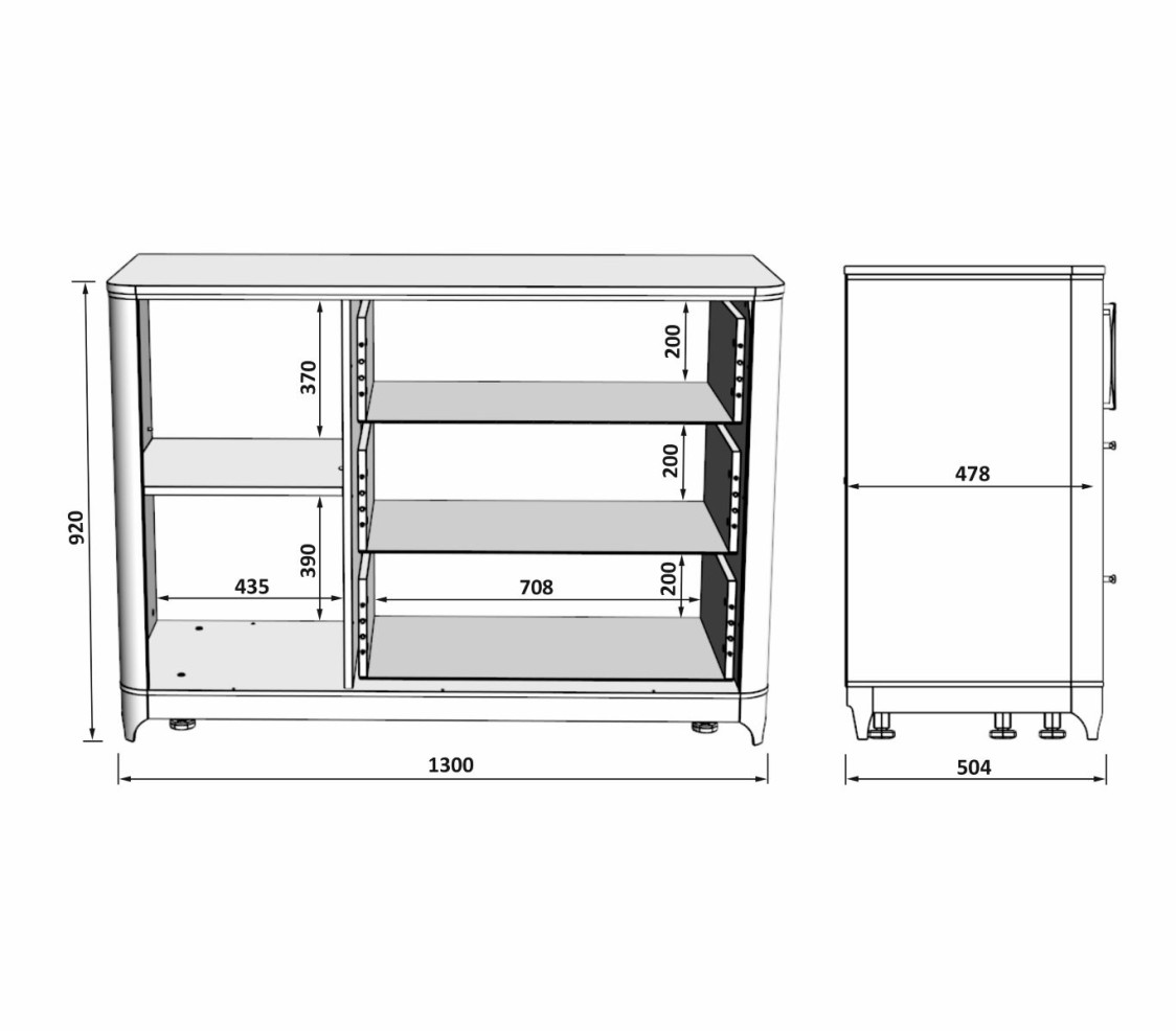 Стандартные габариты, Ш/Г/В: 1300/504/920 мм.